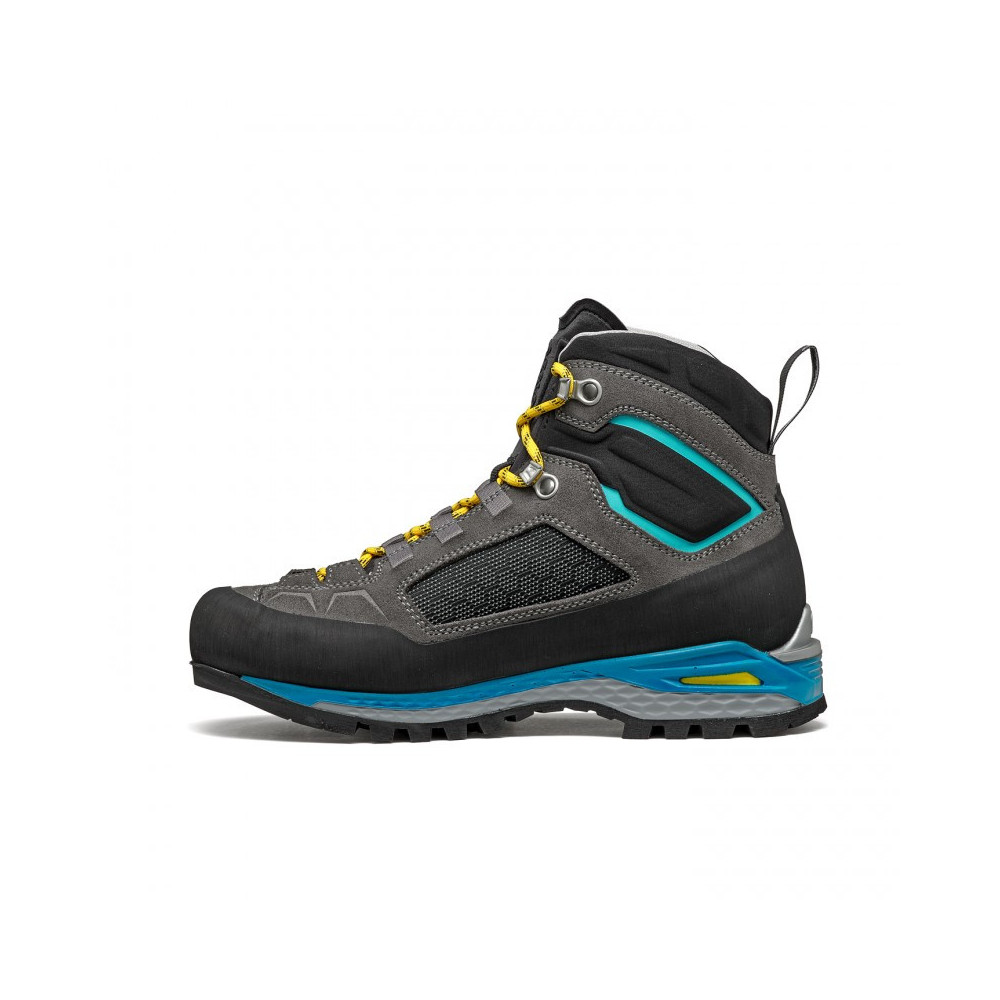 Wędrówki alpejskie, via ferraty i wymagające trekkingi z ciężkimi plecakami. Wersja o średniej wysokości cholewki z rodziny Freney Evo: cholewka ze skóry Perwanger oraz trójwymiarowo formowany język, kołnierz i kostka zapewniają prawidłowe dopasowanie i swobodę ruchów. Podszewka Gore-Tex Performance Comfort Footwear gwarantuje wodoodporność i oddychalność. Podeszwa środkowa z monolitycznego poliuretanu pokryta folią PU oraz amortyzujący wstrząsy element EVA wtryskiwany w obszar pięty zapewniają stabilność, komfort i amortyzację. Wkładka TPU w pięcie sprawia, że model można dostosować do półautomatycznych raków. Gumowa podeszwa zewnętrzna Vibram 1229 Mulaz zapewnia przyczepność i precyzję. Model uzupełnia gumowy i poliuretanowy (po bokach) otok zapewniający dodatkową ochronę oraz system sznurowania ze sztywnymi przelotkami, który umożliwia szybkie i precyzyjne sznurowanie.