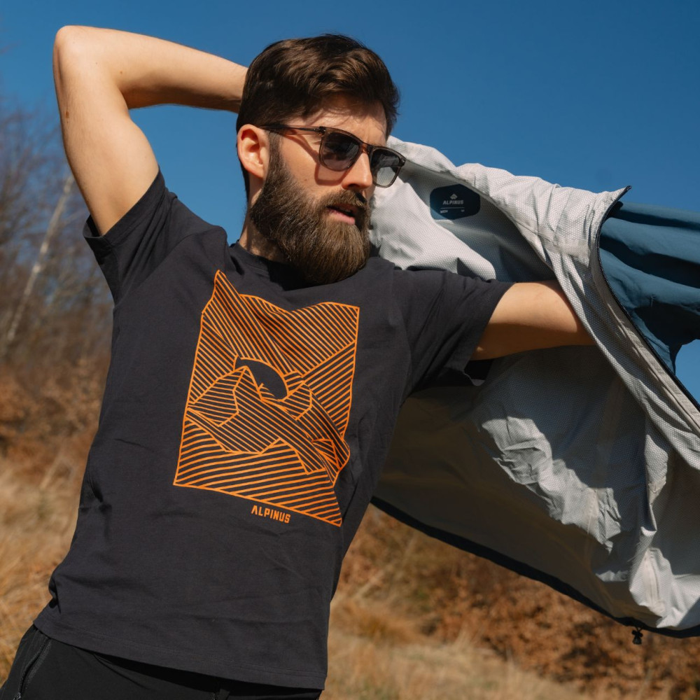 Kurtkę zdobią subtelne nadruki: silikonowe logo z przodu oraz odblaskowy print na plecach – dla lepszej widoczności w warunkach ograniczonej widoczności (Alpinus Safety). Do kurtki dołączony jest także worek kompresyjny wykonany z tego samego materiału, dzięki czemu kurtkę można łatwo spakować i mieć zawsze pod ręką.