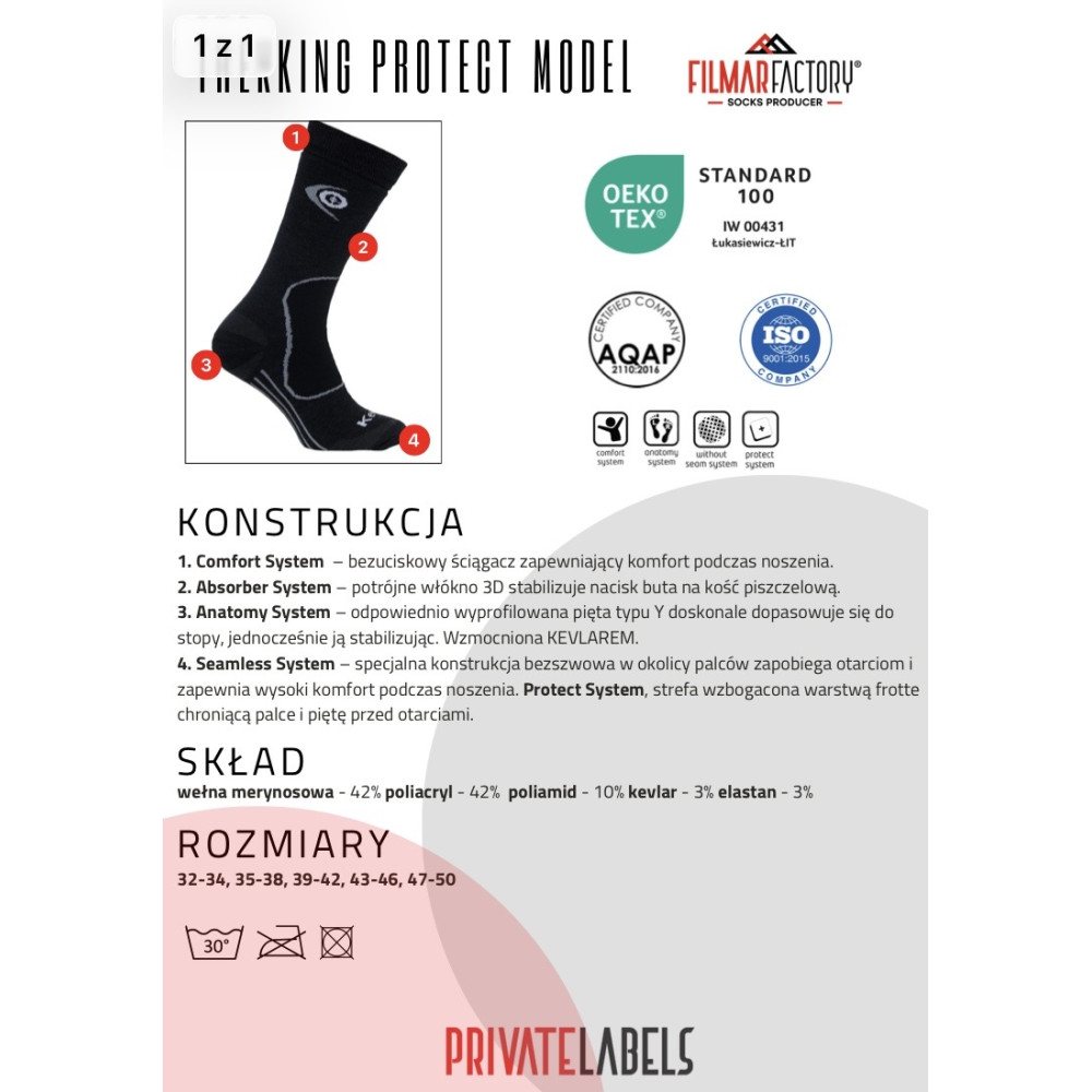 Płaski szew przy palcach zapobiega ocieraniu oraz zapewnia komfort użytkowania