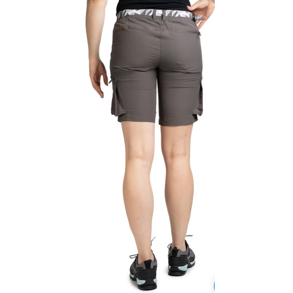 Dzięki kobiecemu, ergonomicznemu krojowi i elastycznemu pasowi z dołączanym paskiem, spodenki świetnie dopasowują się do sylwetki i nie krępują ruchów. Pięć praktycznych, zapinanych na zamek kieszeni – w tym dwie typu „cargo” – pozwala bezpiecznie przechowywać najważniejsze drobiazgi w trakcie wędrówki.